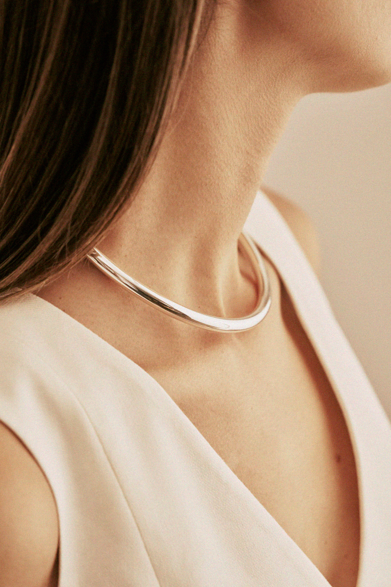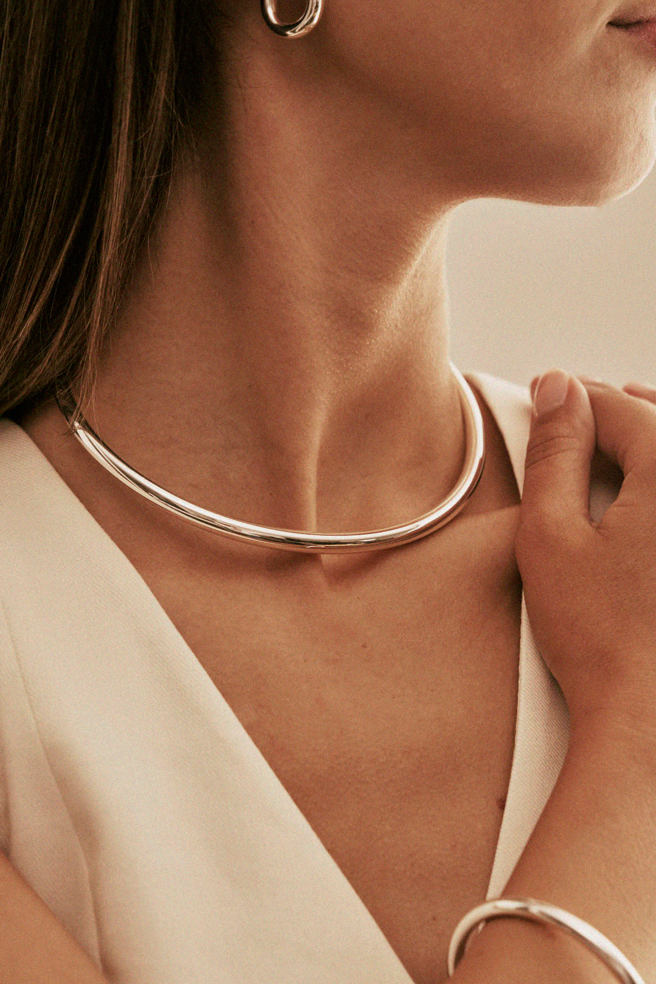 Modern necklace statement piece designed to stand out. Perfect to be worn on it's own or layered with finer pieces from your own collection. Lightweight with a unique hollow design so you can wear all day and night long.