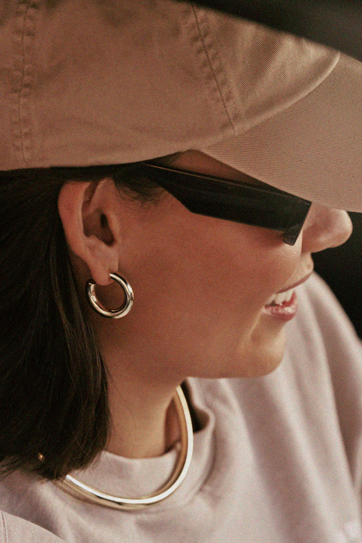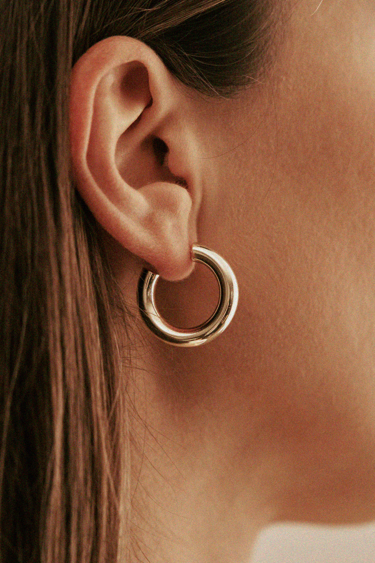 Designed to complement every ear, our Germain Medium Hoops Gold offer a perfect balance of aesthetic and comfort.